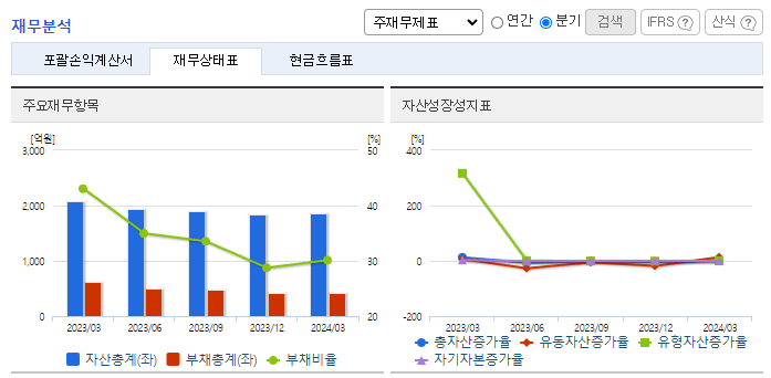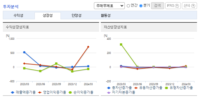 -2024년 3월 전년동기 대비 연결기준 매출액은 39.4% 증가, 영업이익은 84.2% 증가, 당기순이익 적자전환. 전장사업부의 주력 제품인 PT센서를 적용하는 차량 모델이 늘어났고, 전기차 설계가 고도화되면서 대당 사용되는 수량이 증가한 점이 매출 성장을 이끌었음. 전기자동차용 신규 품목 개발이 순조롭게 진행되고 있으며 연내 신제품 상용화가 가능할 것으로 예상하고 있는 만큼 이로 인한 추가 매출이 발생할 것으로 기대됨.