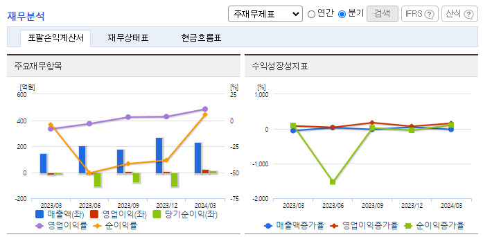 -2024년 3월 전년동기 대비 연결기준 매출액은 56.4% 증가, 영업이익 흑자전환, 당기순이익 흑자전환. 국내에서는 아직 투자가 없는 10.5세대 Glass 제조공장에 대한 투자도 최근 결정되어 향후 5년간 투자계획이 수립되어 있는 상황임. 동사가 개발한 VDO System은 신규로 부각되는 대면적 TV & 투명 OLED 디스플레이 제조 공정 적용에 따른 지속적 수익 창출이 예상됨.