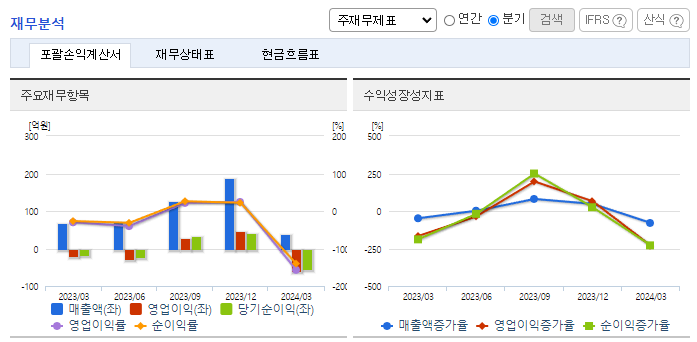 -2024년 3월 전년동기 대비 연결기준 매출액은 45% 감소, 영업손실은 186.3% 증가, 당기순손실은 187% 증가. 장비매출의 감소로 인해 매출액의 감소 및 영업 손실이 발생했으며, OL-12inch(제품)에 대한 매출이 인식되지 않았음. 신규 박막계측장비의 경우 식각, 증착공정뿐 아니라 평탄화 공정 등 대부분의 공정에서 사용될 것으로 예상되기 때문에, 향후 동사의 중장기 성장 동력이 될 것으로 예상됨.