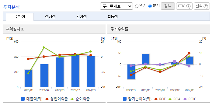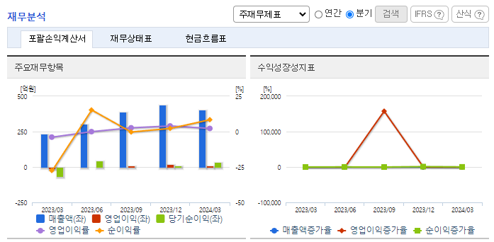 -2024년 3월 전년동기 대비 연결기준 매출액은 74.1% 증가, 영업이익 흑자전환, 당기순이익 흑자전환. 후속 모델로 50kW급 파워모듈 선행 개발에 착수하였으며, 중장기적으로는 전기자동차 충전과 연관된 부품인 OBC, LDC 등 신규사업 참여도 검토 중. 건성황반변성치료제 관련 동사는 2022년 5월 첫 번째 환자 투약을 시작으로 임상계획에 따라 성실히 임상을 진행 중.
