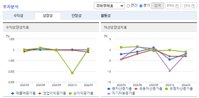 -2024년 3월 전년동기 대비 연결기준 매출액은 3.5% 감소, 영업손실은 45.6% 감소, 당기순손실은 17.9% 감소. 입체적 독서경험을 테마 도서에 적용한 '디즈니 인터랙티브 리딩' 시리즈 출시를 통해 시장의 큰 호응을 얻었음. 양질의 도서와 온·오프라인 학습 콘텐츠를 결합한 '웅진북클럽'과 AI 기술이 적용된 '웅진스마트올' 제품은 지속적인 개발을 통해 앞으로 스마트 시대의 교육시장 선도에 노력.