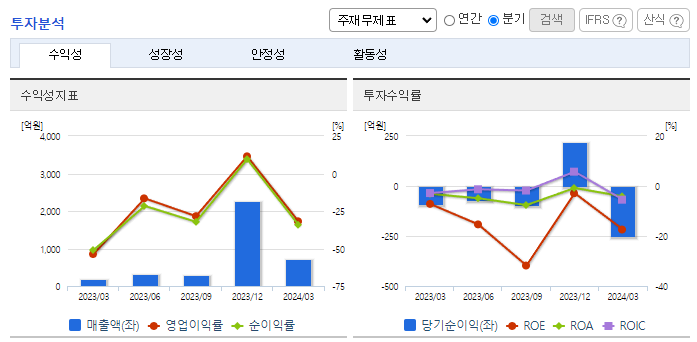 -2024년 3월 전년동기 대비 연결기준 매출액은 310% 증가, 영업손실은 143.3% 증가, 당기순손실은 174.4% 증가. 동사는 2차전지 사업부문의 실적이 크게 증가하였지만 원가율 악화, 판관비 부담으로 손실을 기록함. 이차전지 산업은 전기자동차, 스마트폰, 스마트 그리드, ESS 등의 수요를 바탕으로 빠르게 성장하고 있음. 동사는 신형 IT전지 패키징 장비에 관한 연구 과제를 진행하는 등 제품 및 산업 동향에 대응 중.