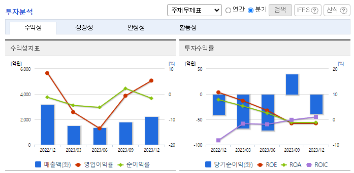 -2023년 12월 전년동기 대비 연결기준 매출액은 31.8% 감소, 영업이익 적자전환, 당기순이익 적자전환. 전방 산업이 불황을 겪으면서 반도체 부문에서 1800억, 디스플레이 부문에서 1200억 가량의 매출 하락이 발생. 반도체 업황이 회복되면서 DRAM 관련 실적이 개선 예정. 평택 진위 3 산업단지에 부지면적 2만 2520㎡규모의 신사옥 준공. CAPA 2배 이상 증가 예정.