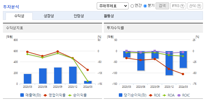 -2024년 3월 전년동기 대비 연결기준 매출액은 69.8% 감소, 영업손실은 416.5% 증가, 당기순손실은 167.5% 증가. 2024년 5월 20일 하사미와 태백 하사미 풍력단지에 대한 유지보수 계약을 체결했음. 계약금액은 117억 원으로 최근 매출액 대비 10.9%에 해당하는 규모임. 동사는 유지보수 분야 노하우와 제품 기술력을 기반으로 다양한 환경에 맞도록 서비스를 강화하고 있으며 고객 맞춤형 솔루션을 제공할 예정임.