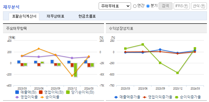 -2023년 12월 전년동기 대비 연결기준 매출액은 46.9% 감소, 영업손실은 325.2% 증가, 당기순손실은 146% 증가. 동사는 저조한 실적 극복을 위해 일부 고객사들과 밀접하게 제품개발과 품질개선을 진행 중이며 중국 휴대폰 메이저 업체들과 현재 개발 진행중임. 동사는 지속적으로 Glass를 기반으로 한 첨단산업 부품 소재에 적용될 수 있도록 사업다각화 전개 중에 있음.