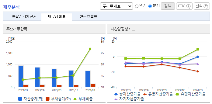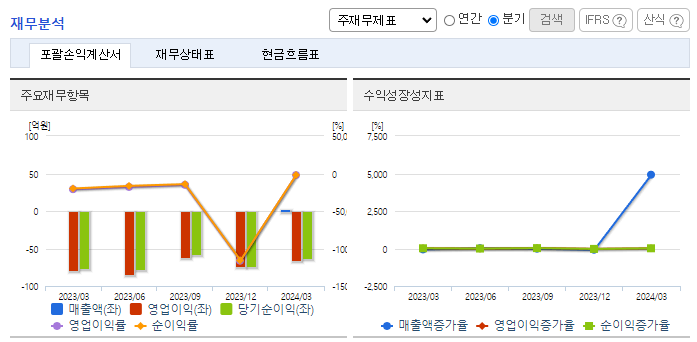-2024년 3월 전년동기 대비 연결기준 매출액은 731.6% 증가, 영업손실은 17.6% 감소, 당기순손실은 15.9% 감소. X-ray 위탁조사, 연구 시설 이용 및 연구 관련 용역 서비스, 위탁 동물실험 분석 등을 하는 기타 사업 부문이 전체 매출을 차지함. 보유 파이프라인 중 항체치료제 EU101은 한국 및 미국 임상1/2상 진행 중이며, 중국 임상 1상 진행 중임.