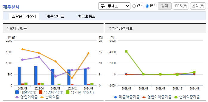 -2023년 12월 전년동기 대비 연결기준 매출액은 29.2% 감소, 영업이익은 69.5% 감소, 당기순이익은 52.1% 감소. 수출거래에 따른 환율변동 위험과 더불어 고객사의 주문제작 방식으로 인해 기능, 크기, 용도 등에 따라 제품의 가격 차이가 큼. 전기 대비 매출액은 29.2% 감소, 매출총이익은 44.3% 감소함. 그루빙 장비와 스텔스 다이싱 장비 시장에 진입할 것으로 전망되며 2024년 상반기 본격 매출 인식이 예상됨.