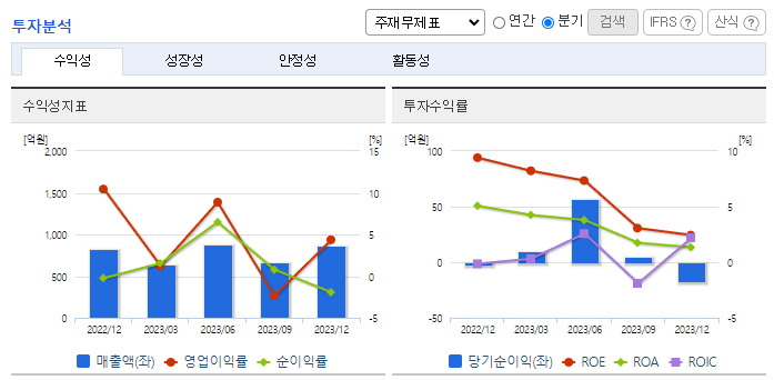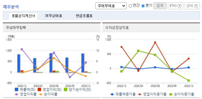 -2023년 12월 전년동기 대비 연결기준 매출액은 27.4% 증가, 영업이익은 30.1% 감소, 당기순이익은 65.5% 감소. 동사는 게이트웨이 안테나 개발 등 신시장/신제품 개발에 자원을 집중하여 2023년에 1천억에 가까운 지상용 제품 매출을 시현함, 동사는 새로운 사업영역인 지상용/항공용 저궤도/중궤도 안테나의 다양한 제품 포트폴리오를 선제적으로 구성중임.
