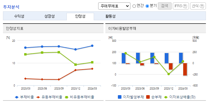 -2024년 3월 전년동기 대비 별도기준 매출액은 31.3% 감소, 영업이익은 46.8% 증가, 당기순이익은 60.4% 증가. 매출이 감소하였음에도 매출원가율 하락으로 영업이익은 증가함. 동사의 경영진은 소비패턴의 변화와 소재 다양화에 따른 수요감소에 선제적으로 대응하고자 패션사업 부분을 과감하게 축소했음. 사업 구조조정 후 확보한 역량을 높은 자동차 사업 부분에 재배치하여 시장 확대에 노력 중.