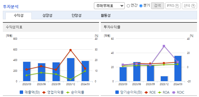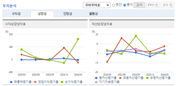 -2024년 3월 전년동기 대비 연결기준 매출액은 5.5% 증가, 영업이익은 13.9% 증가, 당기순이익은 87.5% 증가. 신작 게임인 스타시드에서 기대이상의 성과를 보여주고 있으며, 프리스타일 게임의 매출액이 분기 최고 매출액을 경신하여 매출 상승에 크게 기여하였음. 신작 게임 광고에 따라 영업비용이 크게 증가하였으나, 이는 마케팅비로 사용된 금액임. 이에 향후 이익성의 증가가 기대됨.