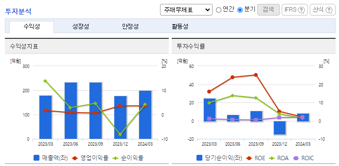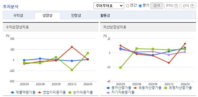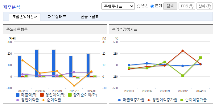 -2024년 3월 전년동기 대비 연결기준 매출액은 10.5% 증가, 영업이익은 135.4% 증가, 당기순이익은 66.3% 감소. 이커머스 및 마트 등으로의 성공적인 유통채널 확장이 실적 개선으로 이어지며 매출 및 영업이익 상승의 주요 동력이 되었음. 특히 이커머스 부문은 전년대비 2배의 성장세를 보였으며, 신규 론칭 브랜드 ‘츄츄안나’ 역시 성공적으로 시장에 안착함. 연내 보디가드 리브랜딩 및 신규 브랜드 론칭을 준비하고 있음.