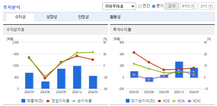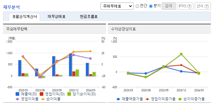 -2023년 12월 전년동기 대비 연결기준 매출액은 35% 감소, 영업이익은 76.6% 감소, 당기순이익은 68% 감소. 동사는 전방업체들의 설비 투자 계획 축소, 지정학적 리스크로 인한 태양광 장비 수출 지연의 영향으로 2022년 대비 영업이익률이 감소함. 차세대 반도체, 디스플레이, 태양광 기술에 선제적으로 대응하고 글로벌 공급망을 확보하는 등 수익성을 개선할 예정임.