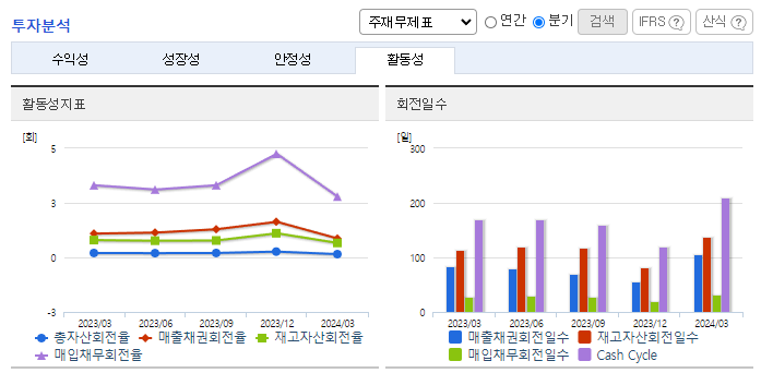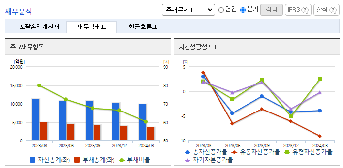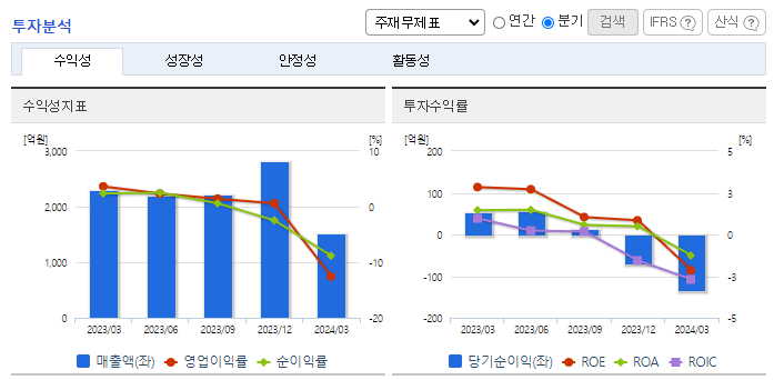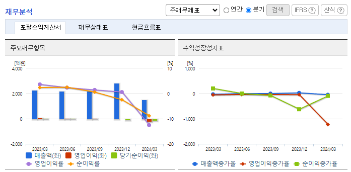 -2024년 3월 전년동기 대비 연결기준 매출액은 33.5% 감소, 영업이익 적자전환, 당기순이익 적자전환. 매트리스 및 침실 가구의 최대시장인 미국과 캐나다 시장의 소비감소가 장기화되고, 주요 고객사의 발주 제한 정책 등으로 공급액이 감소한 영향으로 매출액의 감소를 나타내고 있음. 기존시장 점유율 확대와 신규시장 성장기반 구축을 위해 광고선전비등의 사용이 증가하며 판매비와 관리비의 증가하였기 때문임.