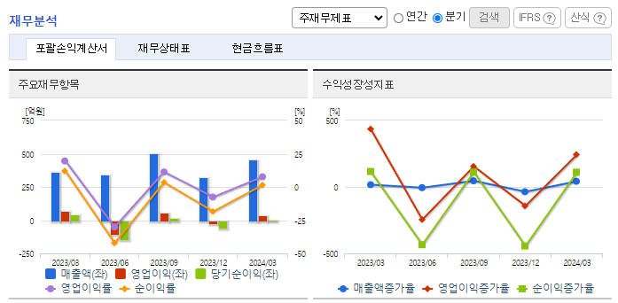 -2023년 12월 전년동기 대비 연결기준 매출액은 31.7% 증가, 영업손실은 99.8% 감소, 당기순손실은 83% 감소. 게임사업 매출이 전년 대비 성장하였고, 관계기업투자수익 부진을 겪었던 전년 대비 매출이 22.3% 증가하여 전반적으로 매출이 증가함. 2024년에는 제노니아 시리즈의 해외 진출과 소울스트라이크 등 다수의 완성도 높은 신작 출시를 통해 게임사업에서의 매출 증가를 예상함.