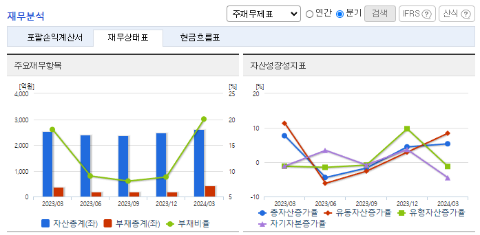 -2023년 12월 전년동기 대비 연결기준 매출액은 14.6% 증가, 영업이익은 20.1% 증가, 당기순이익은 46.4% 증가. 국내 최초 펩타이드 기반 코에 뿌리는 코비드-19 항바이러스 치료제 "스파이크다운"을 개발 중으로 코비드-19 해결의 획기적인 전환점이 될 것으로 기대됨. 동사가 개발한 습성황반변성 치료 펩타이드는 현재 미국 식품의약국(FDA)을 통해 임상 시험계획을 승인받아, 미국 내에서 임상 1상을 진행하고 있음.
