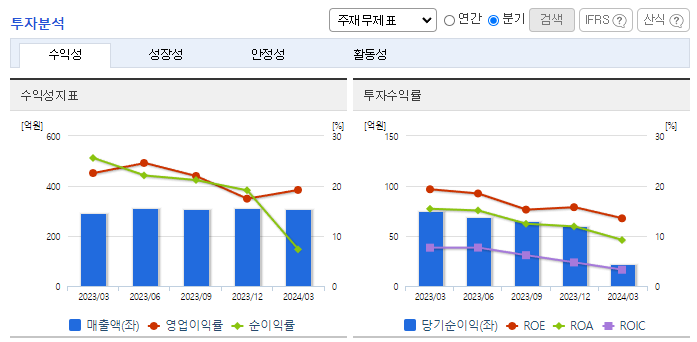 -2024년 3월 전년동기 대비 연결기준 매출액은 4.6% 증가, 영업이익은 11.1% 감소, 당기순이익은 42.6% 감소. 동사의 IDC/솔루션/CDN 매출이 전년동기 대비 소폭 증가하였지만 세금 및 개발비와 같은 판관비와 매출원가 인건비 또한 증가하면서 영업이익이 감소함. 현재 건설 중인 KINX의 IDC과천센터를 기반으로 지속적으로 사업 경쟁력을 강화하여 사업을 확대해 나갈 계획.