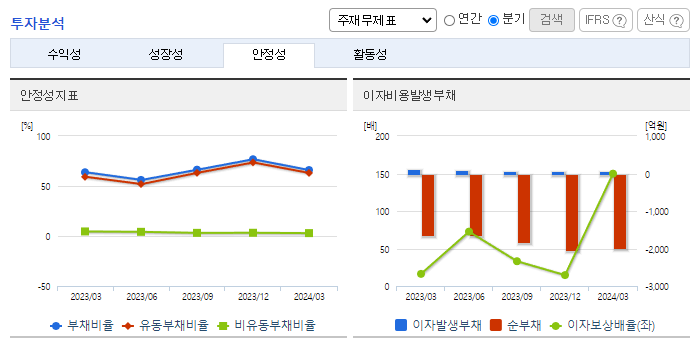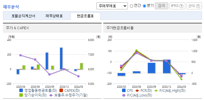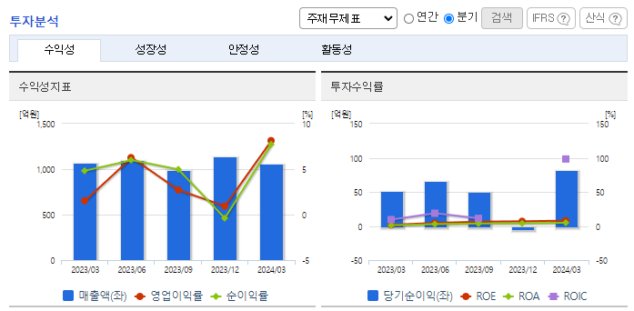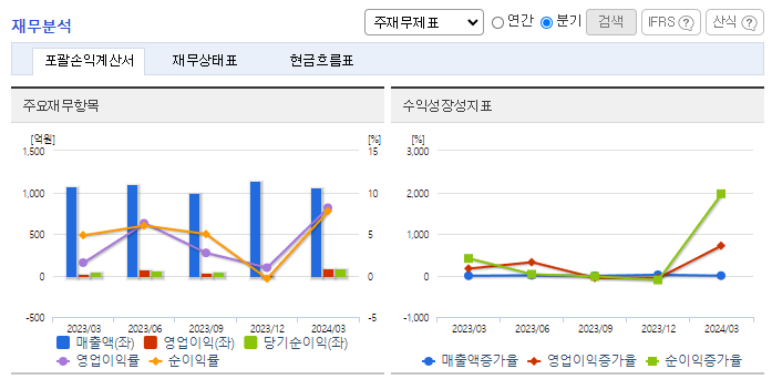 -2024년 3월 전년동기 대비 별도기준 매출액은 0.9% 감소, 영업이익은 425.5% 증가, 당기순이익은 58.8% 증가. 매출액은 소폭 줄었으나 T커머스 사업 취급고 성장과 모바일상품권 사업 매출 확대로 영업이익이 증가하였음. 고품질 영상 제작을 통해 TV기반 커머스 강점을 극대화하고, 모바일상품권 사업은 기업 대상 부가 서비스를 원스톱 제공해 새 성장동력을 확보할 예정임.