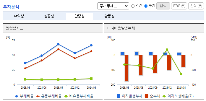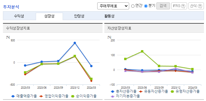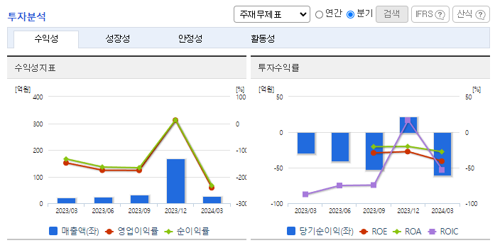 -2023년 12월 전년동기 대비 별도기준 매출액은 58.7% 증가, 영업손실은 172.1% 증가, 당기순손실은 200.2% 증가. 와처 관련 국방 분야의 납품 사이트 증가, AI 분석 수요 등가 등 AI 솔루션을 통한 비즈니스에 대한 관심과 수요 증가로 매출이 크게 상승함. 증가하는 수요에 대응하기 위해 연구 및 개발 인력과 영업 및 지원 인력 등을 추가로 채용하며 매출원가, 판매비와 관리비 등도 함께 상승하며 영업손실을 기록함.