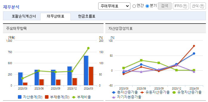 -2024년 3월 전년동기 대비 별도기준 매출액은 31.8% 감소, 영업손실은 1.4% 감소, 당기순손실은 21.3% 증가. 인공지능(AI)과 자율주행차 등 신산업 분야에서 기술 발전이 본격화되면서 관련 사업부의 첨단 반도체 수요도 늘어나 매출 성장기 기대됨 로봇/물류 설비에 대한 설계와 설비 자동화 시스템 개발 및 공급을 하는 로봇물류 사업부문이 신규로 추가되어 사업다각화가 발생함