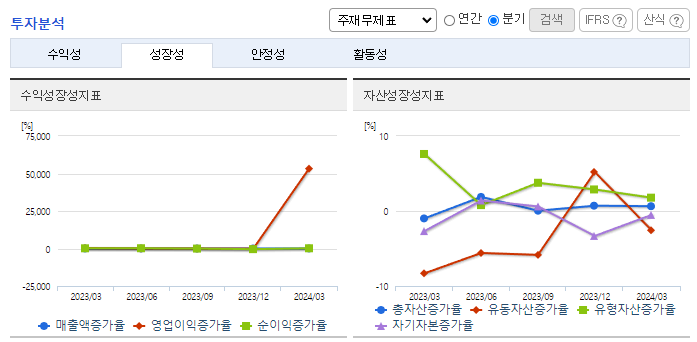 -2024년 3월 전년동기 대비 연결기준 매출액은 15.3% 증가, 영업이익은 17.9% 증가, 당기순이익은 290.3% 증가. 동사의 수익은 계열회사의 성장과 함께 증가하며, 이를 위해 동사는 지주회사로서 자회사의 기업가치 상승에 사업역량을 집중하고 있음. 자회사 콜마비앤에이치 실적이 개선된 영향으로 영업이익이 증가하였음. 또 유산균 등 건기식 해외 수출 물량이 회복되고 있고 있음.