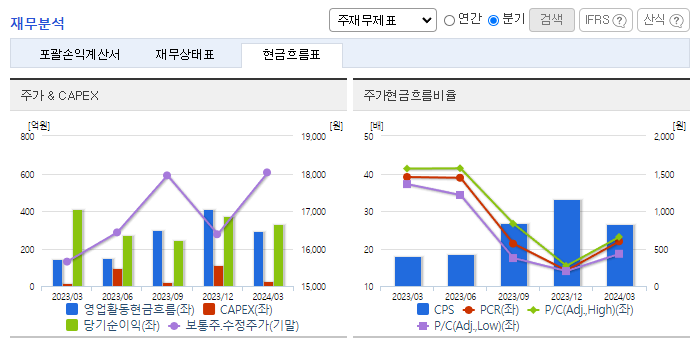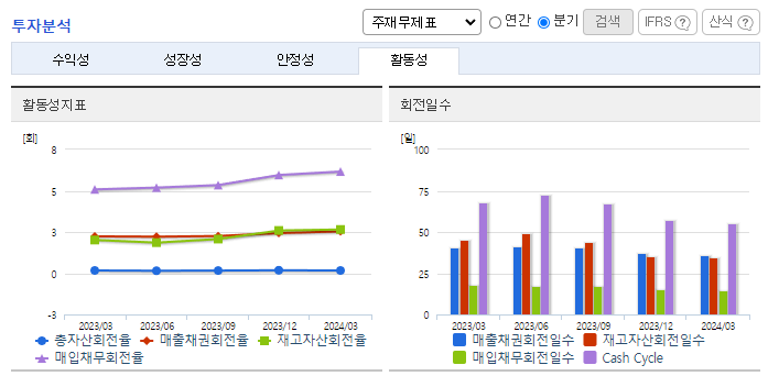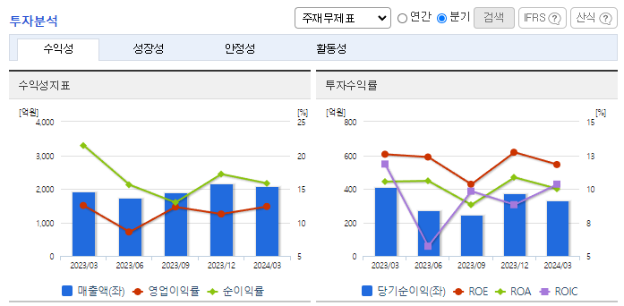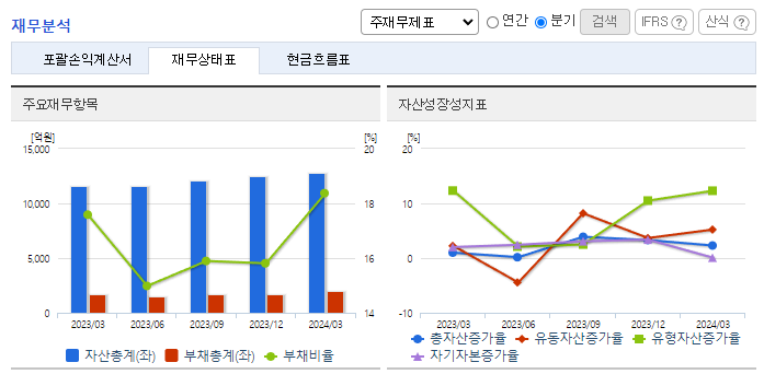 -2024년 3월 전년동기 대비 연결기준 매출액은 8.4% 증가, 영업이익은 7.1% 증가, 당기순이익은 19.9% 감소. 중국, 베트남 등 주요 수출 국가를 대상으로 브랜드샵 오픈, TV광고 집행, 고객 접점 activation 등 공격적인 브랜드 마케팅을 추진하고 있어 매출 성장이 기대됨. 온라인, 할인점, 홈쇼핑 등 다양한 유통경로와 가격 경쟁력, 차별화된 제품으로 시장을 확대하기 위해 노력하고 있음.