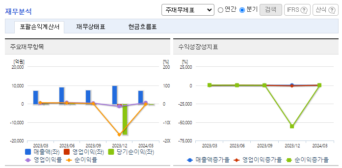 -2024년 3월 전년동기 대비 연결기준 매출액은 0.4% 감소, 영업이익은 94.3% 증가, 당기순이익 적자전환. 동사는 23년 12월 워크아웃을 신청하였고 2024년 1분기 동안 수주 획득에 노력하고 있음. 동사가 시공사로 참여하는 춘천공공하수처리시설 이전 현대화 민간투자사업은 기획재정부 민간투자심의 통과 후 춘천시와 실시협약을 체결하였으며, 향후 실시설계 승인 과정을 거쳐 도급계약을 체결할 예정임.