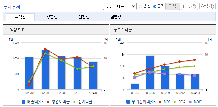 -2024년 3월 전년동기 대비 별도기준 매출액은 14.1% 감소, 영업이익은 289.9% 증가, 당기순이익은 152.1% 증가. 1분기 매출액은 역성장했으나 영업이익은 대폭 증가하였음. 1분기가 계절적 비수기임을 고려한다면 양호한 실적을 달성함. 해상풍력용 링밀 장비 가동률이 100%로 유지되는 가운데, 신조선가 상승에 따라 조선향 대형 프레스 설비 매출 성장이 올해 매출 증가를 견인할 예정임.
