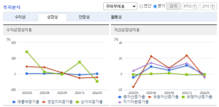 -2024년 3월 전년동기 대비 연결기준 매출액은 1.1% 감소, 영업이익은 61.6% 감소, 당기순이익 적자전환. 매출액은 유사하였으나, 영업이익이 큰 폭으로 감소함. 이는 전방시장 위축에 따른 매출 성장 부진과 연구개발비용이 크게 상승하였기 때문임. 신규 칩 개발을 위한 연구개발 인력을 충원 중장기적인 성장을 도모하기 위해 연구개발에 힘쓰고 있으며, 2025년부터는 유럽 완성차에 상품을 공급할 예정임