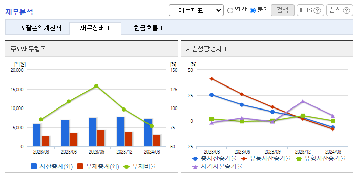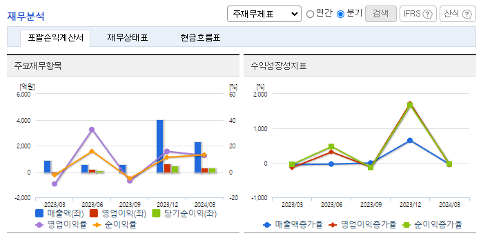-2024년 3월 전년동기 대비 연결기준 매출액은 170.6% 증가, 영업이익 흑자전환, 당기순이익은 13872% 증가. 전년 동기 대비 임직원의 수가 30명이 증가하였음에도 대손상각비의 환입 2,213,993(천 원) 발생 등으로 인해 판매비와 관리비 감소하였음. 기존 2차 전지, 스마트팩토리, 디스플레이의 포트폴리오에 추가로 배터리 전극공정, 리사이클링, 반도체 프로브 스테이션 등으로 사업영역을 확장할 예정
