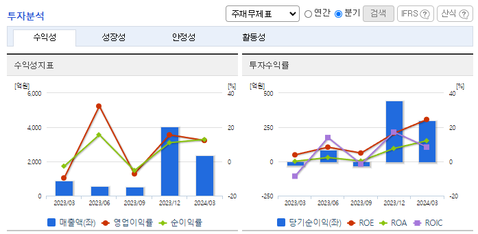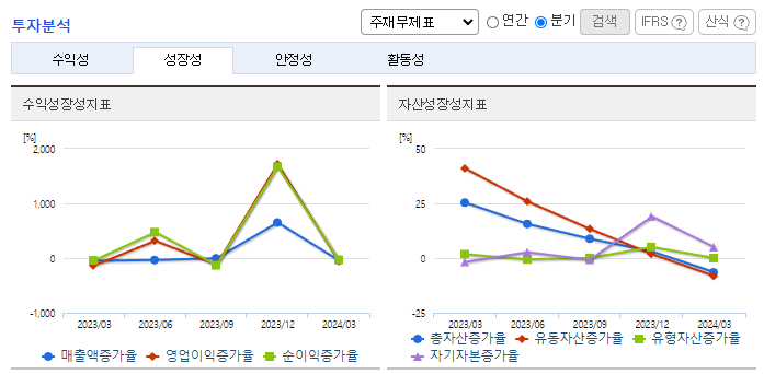 -2024년 3월 전년동기 대비 연결기준 매출액은 170.6% 증가, 영업이익 흑자전환, 당기순이익은 13872% 증가. 전년 동기 대비 임직원의 수가 30명이 증가하였음에도 대손상각비의 환입 2,213,993(천 원) 발생 등으로 인해 판매비와 관리비 감소하였음. 기존 2차 전지, 스마트팩토리, 디스플레이의 포트폴리오에 추가로 배터리 전극공정, 리사이클링, 반도체 프로브 스테이션 등으로 사업영역을 확장할 예정