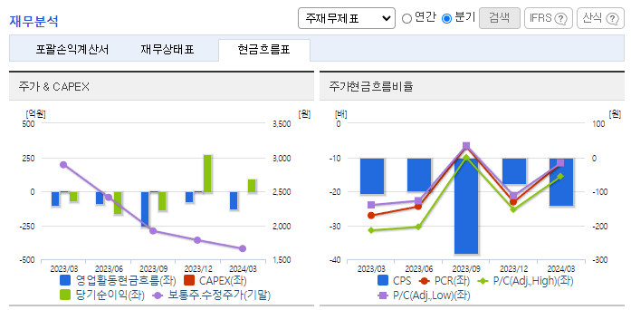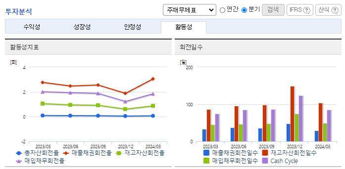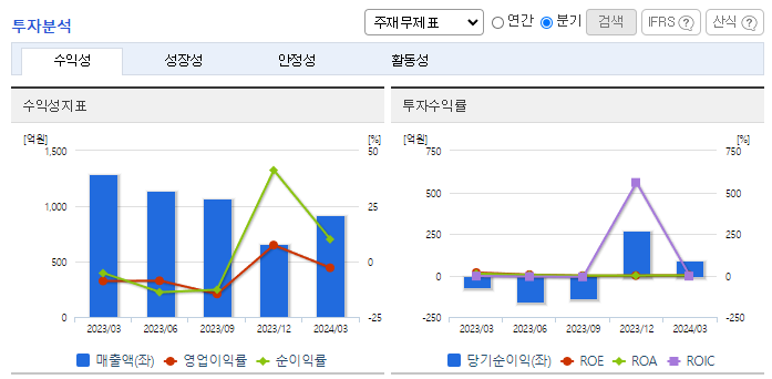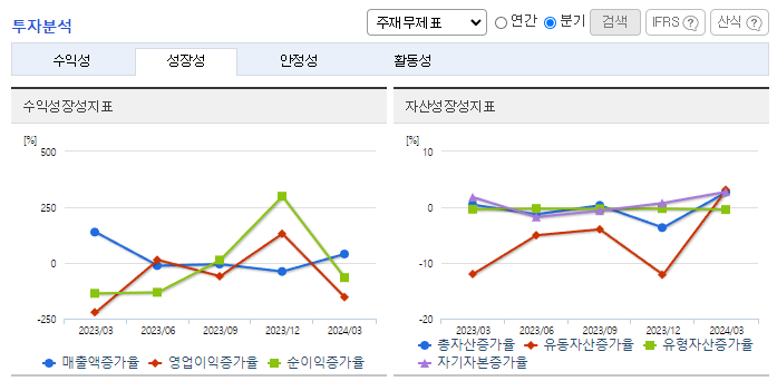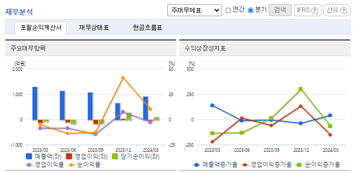 -2024년 3월 전년동기 대비 별도기준 매출액은 14% 감소, 영업손실은 34.6% 감소, 당기순이익 흑자전환. 동사는 모든 사업부의 매출이 전년동기 대비 감소하였음에도, TPA 및 MEG와 같은 원재료 가격이 하락하고 판관비 및 인건비 절감의 노력으로 영업손실 폭이 축소됨. 동사 제품의 거래 확대 및 신규거래선의 개발 및 관리, 나아가 신시장을 개척하는데 노력함.