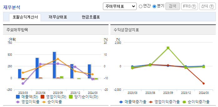 -2024년 3월 전년동기 대비 별도기준 매출액은 49.5% 증가, 영업손실은 11.3% 증가, 당기순손실은 86.5% 증가. 동사는 20㎜ 두께의 ‘울트라슬림 휴대용 1구 인덕션’을 출시했음. 최신 노트북만큼 얇은 두께와 가벼운 무게, 동급 최고 수준의 화력이 특징이며, 이로 인한 매출증대가 기대됨. 창문형 에어컨 및 써큘레이터 등 틈새를 공략한 제품을 출시하여 시장에서 좋은 반응을 보이고 있으며, 새로운 시장을 개척해나가고 있음.
