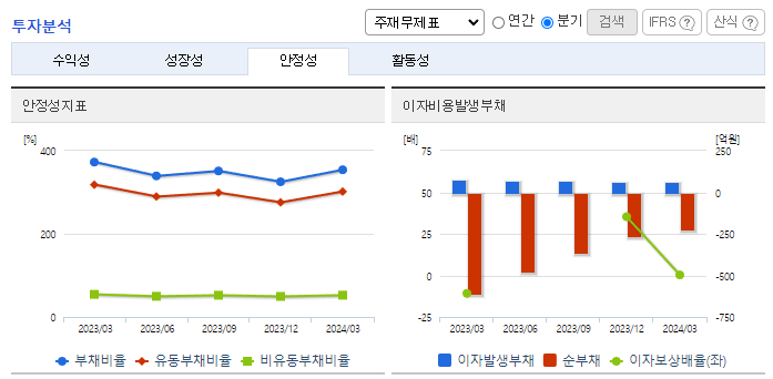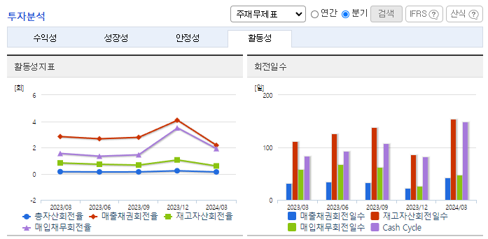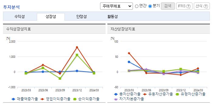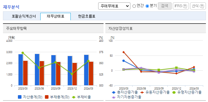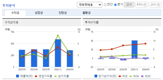 -2024년 3월 전년동기 대비 별도기준 매출액은 3.7% 감소, 영업이익 흑자전환, 당기순이익 흑자전환. 방위산업의 매출은 전년동기 대비 소폭 감소하였음에도 비용 절감 노력으로 영업이익이 흑자전환됨. 동사는 시장점유율에서 20위권 이내를 형성하고 있으며 향후 무인화사업 체계업체로의 발돋움 및 수출주도 성장사업 진입, 미래 무기체계 개발·양산을 위해 끊임없는 투자와 연구개발을 이어 나가고 있음.