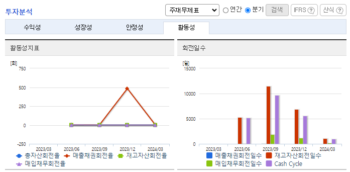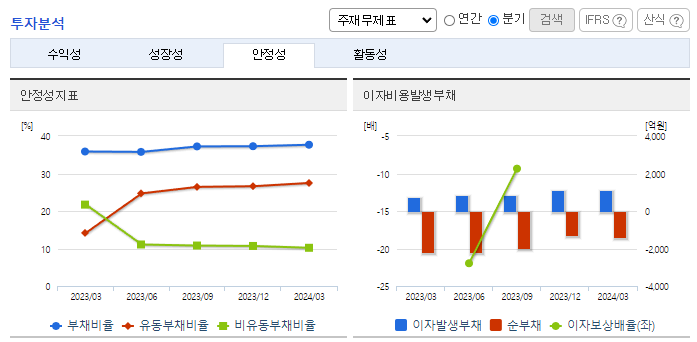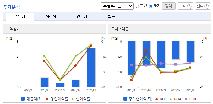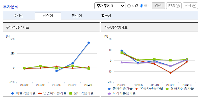 -2024년 3월 전년동기 대비 연결기준 매출액은 0% 증가, 영업손실은 8.9% 증가, 당기순이익 적자전환. 매출은 발생하였으나, 판관비 영향으로 수익성은 아직 부진함. 동사는 연구개발, 임상, 상업화, 생산까지 풀 밸류 체인 시스템을 구축하고 있음. 올해 상반기 부산에 1만 평에 달하는 혁신신약연구원이 완공되면 혁신신약과 신규 바이오기술의 연구개발이 더욱 속도를 낼 것임.