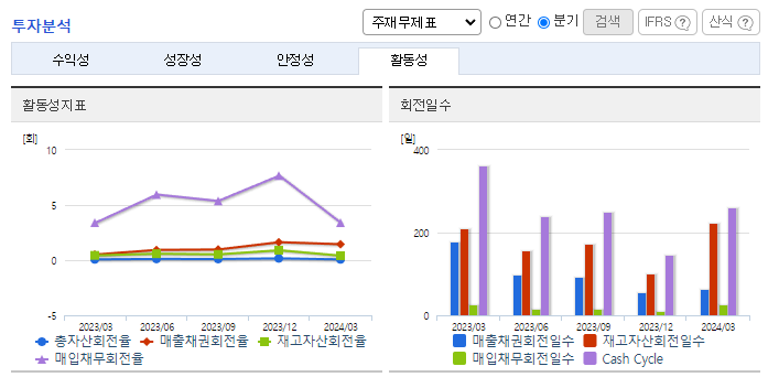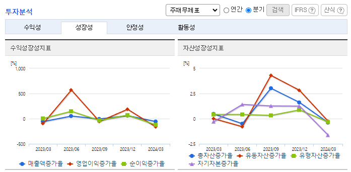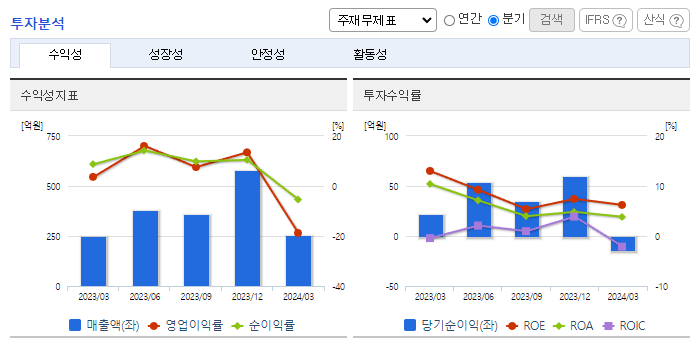 -2024년 3월 전년동기 대비 연결기준 매출액은 2.1% 증가, 영업이익 적자전환, 당기순이익 적자전환. 반도체 시장 사이클의 하락추세에 따라 영업이익 및 당기순이익이 적자로 전환함. 주요 매출 품목인 디스펜서등의 판매량이 전분기 대비 약 30%가량 감소함 신규장비 판매 다양화 및 신규거래처 발굴을 최우선으로 적극적인 영업활동을 해나가며 중장기적으로 장비 다각화, 고객 다변화로 성장을 모색해나가고 있음.