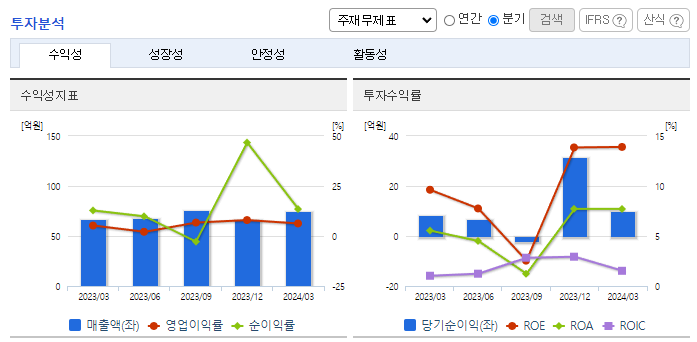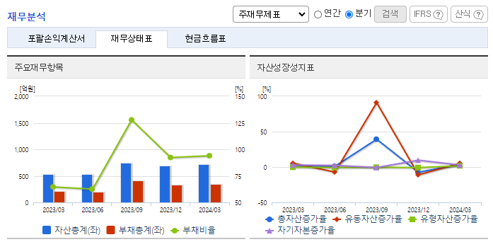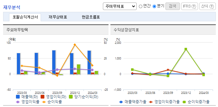 -2024년 3월 전년동기 대비 별도기준 매출액은 13% 증가, 영업이익은 27.6% 증가, 당기순이익은 15.4% 증가. 기존 지역 매출 확대와 신규 지역 진출로 매출액이 증가하였으며, 특히 아메리카 지역 수출이 증가함. 코스메슈티컬 브랜드인 셀린스템의 B2B 화장품을 개발 및 출시하였으며, K-뷰티에 대한 글로벌 수요가 증가함에 따라 글로벌 시장에 진출할 예정임.