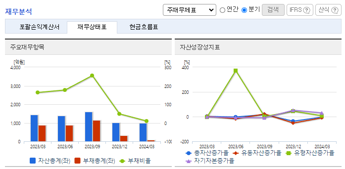 -2023년 12월 전년동기 대비 별도기준 매출액은 169.2% 증가, 영업손실은 1,015.1% 증가, 당기순손실은 1,067% 증가. 영구앵커, 타이케이블 등 제품매출이 11억 원, 교량케이블, PAP옹벽, 기타 시공 등 공사매출이 201억 원, 상품, 분양, 수수료매출 등 기타 매출이 16억 원으로 합계 228억 원의 매출을 실현하였음. 계절적으로는 정부의 SOC 예산집행의 특성상 3분기 이후에 매출이 집중되는 경향이 있음.