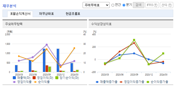-2024년 3월 전년동기 대비 연결기준 매출액은 30.1% 증가, 영업이익은 26.6% 증가, 당기순이익은 256.4% 증가. 동사는 라온텍과 반도체 웨이퍼 후공정 자동광학검사 장비에 대한 공급 계약을 체결하였음. 동사는 신사업 진출을 위해 최근 수년간 반도체 웨이퍼 AOI 장비를 개발해 왔음. 향후 국내외 시장 대부분을 점유하고 있는 외산 반도체 웨이퍼 AOI 장비 영역의 본격적인 진출을 위해 적극적인 영업을 전개해 나갈 것임.