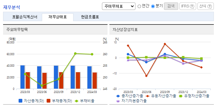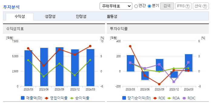 -2024년 3월 전년동기 대비 연결기준 매출액은 2.9% 증가, 영업이익은 13.2% 증가, 당기순이익은 4.6% 감소. 동사의 판관비 중 가장 높은 비중을 차지하는 광고선전비가 117억, 20.1% 감소함에 따라 영업이익 증가함. 국내 주류시장 외에도 일본을 비롯한 중국, 미국, 베트남 등 해외 주요 국가에 대한 마케팅 및 시장공략 강화를 통한 매출 확대 전략을 진행 중임.