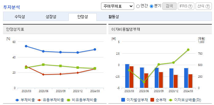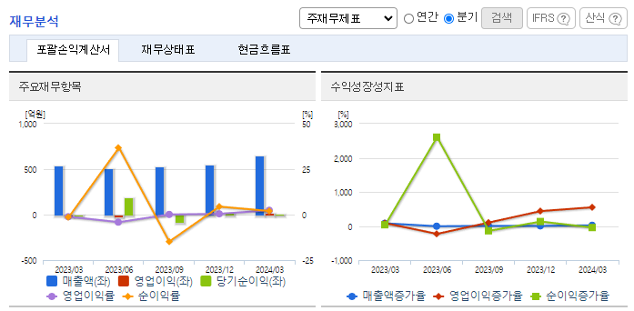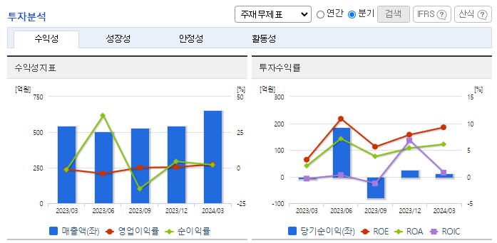 -2024년 3월 전년동기 대비 별도기준 매출액은 20.3% 증가, 영업이익 흑자전환, 당기순이익 흑자전환. 동사의 모든 사업부문 매출이 전년동기 대비 증가하였으며 특히 '상품 글리콜에테르, 계면활성제'의 매출은 전년동기대비 약 320 % 급증함. 동사의 매출이 증가한데 이어 지급수수료 등과 같은 판매비와 관리비, 인건비 비용 절감 실현으로 동사의 2024년 1분기 영업이익 및 당기순이익은 흑자전환에 성공.