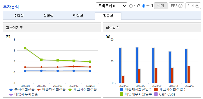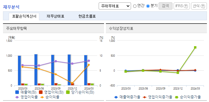 -2024년 3월 전년동기 대비 연결기준 매출액은 1.4% 증가, 영업이익은 24% 증가, 당기순이익은 15.3% 증가. 배터리 소재 관련 미국, 헝가리, 말레이시아 해외수주와 사우디 네옴시티의 근로자 숙소단지 용역 추가수주, 쿠웨이트의 압둘라 신도시 개발 프로젝트의 PM 등 수주확대 중임. 국내 건설경기 침체에도 해외사업의 호조가 이어졌으며 반도체, 2차 전지 등 하이테크 분야 매출이 확대되어 안정적인 실적 성장세를 유지함.