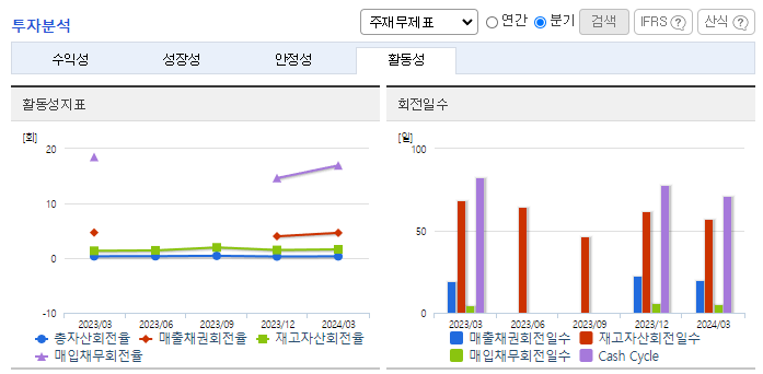 -2024년 3월 전년동기 대비 연결기준 매출액은 0.2% 증가, 영업이익은 6.2% 증가, 당기순이익은 24.7% 감소. 스마트팩토리 시스템 확대를 통한 생산 효율성 제고 및 원가율 개선 노력으로 수익성이 개선됨. 또한 TARGET, GAP 등 유명 바이어들로부터 오더를 수주받아 베트남, 인도네시아 및 중남미 지역에 소재한 현지법인 공장을 이용하여 제품을 생산, 수출하고 있음.