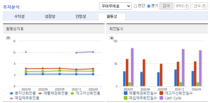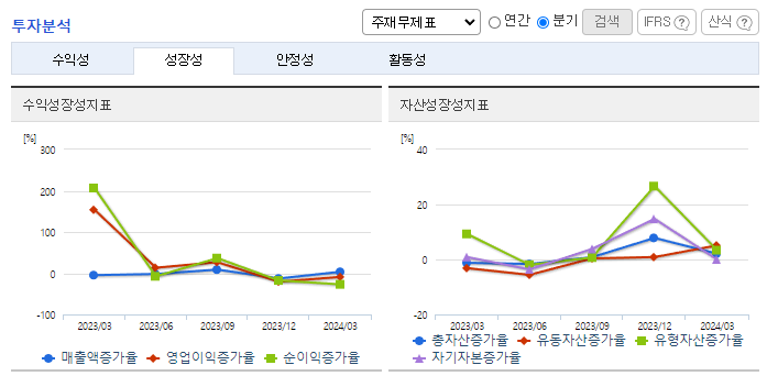 -2024년 3월 전년동기 대비 연결기준 매출액은 3.6% 감소, 영업이익은 3.8% 증가, 당기순이익은 11.6% 감소. 동사의 전자상거래, 의류판매 매출이 전년동기 대비 감소하였음에도 매출원가 및 판관비용의 절감으로 영업이익은 오히려 3.8 % 증가하였음. 갈수록 치열해지는 저가의 데님 팬츠 시장에서 국내 소비자들에게 프리미엄 데님의 가치 제공 전달로 매출 신장을 기대하고 있음.