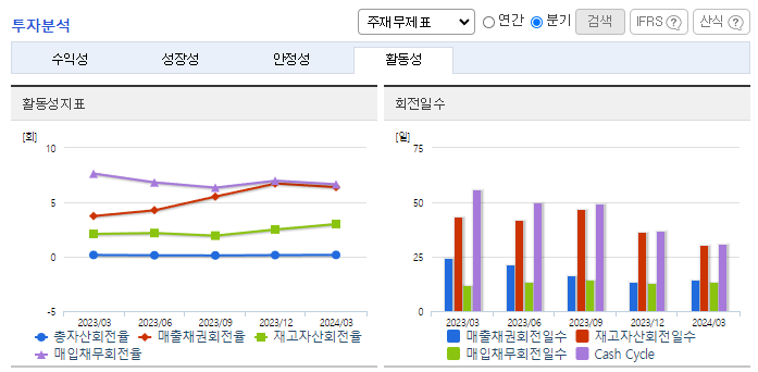 -2024년 3월 전년동기 대비 연결기준 매출액은 3.2% 증가, 영업이익은 53.3% 증가, 당기순이익은 94.2% 증가. 반도체 경기 침체 따른 고부가 모델의 매출 감소와 경영 효율성 증대 및 업무 프로세스 개선을 위한 컨설팅 비용 증가되어 판매관리비가 증가함에 따라 실적이 악화됨. 반도체 상승 사이클에 진입에 따라 반도체 산업 성장속도는 더욱 가속화할 것으로 전망. 동사는 정밀부품을 공급함으로써 실적 개선 예상.