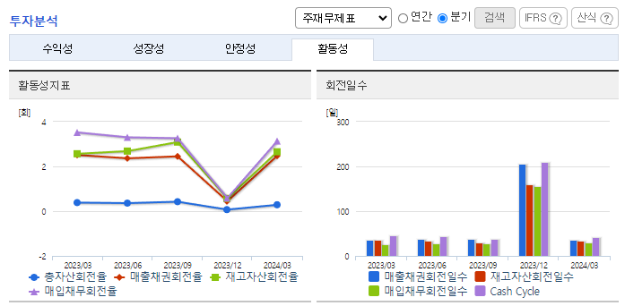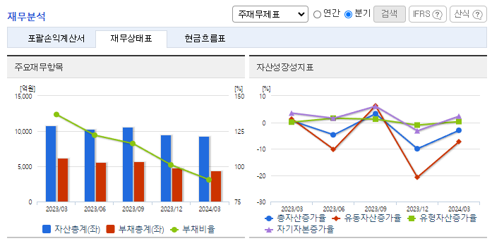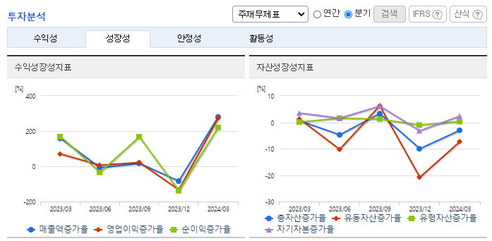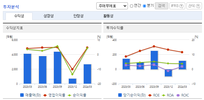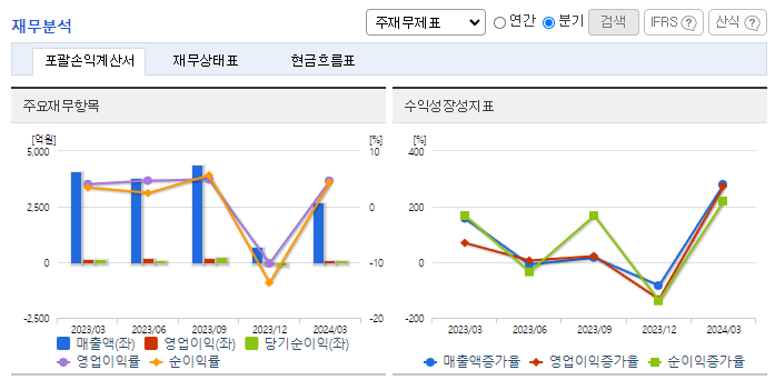 -2024년 3월 전년동기 대비 연결기준 매출액은 27.8% 감소, 영업이익은 25.1% 감소, 당기순이익은 38.8% 감소. 솔라 모듈사업의 물량 감소와 전년동기 파워보드 판매량 호조에 따른 영향으로 전년동기대비 매출이 감소함에 따라 이익이 감소함. 투자규모는 큰 반면 시장경쟁력 하락으로 수익성이 저조했던 LCM 사업을 중단 후 새로운 성장 기회를 모색하고 있음.