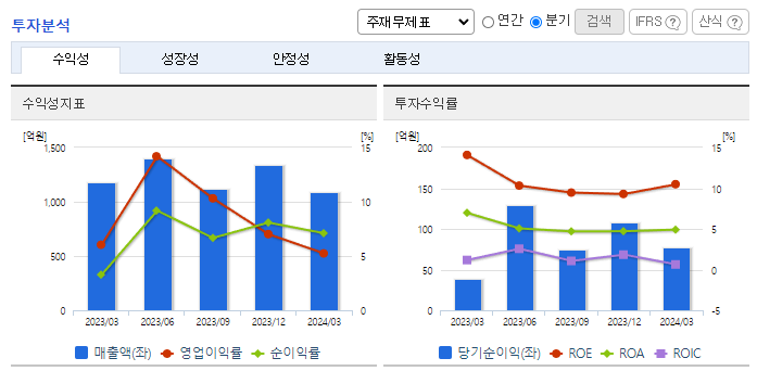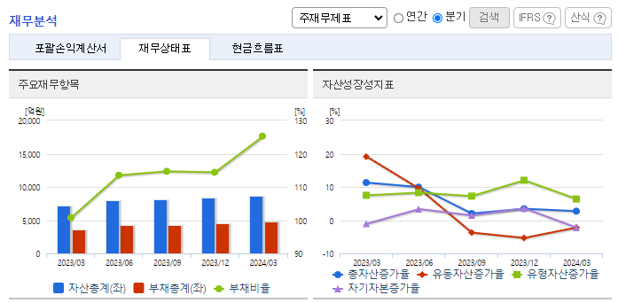 -2024년 1분기 별도기준 매출액은 전년동기 대비 7.8% 감소, 영업이익은 20% 감소, 당기순이익은 99.7% 증가. 건설 경기가 악화됨에 따라 동사의 2024년 1분기 매출액이 감소하였으며 금리인상 및 건설경기의 침체가 이어짐에 따라 시장 규모가 감소할 것으로 예측되고 있음. 기존 포틀랜드시멘트뿐만 아니라 슬래그시멘트 등 다양한 제품 간 시너지 확대를 도모하고 있음.