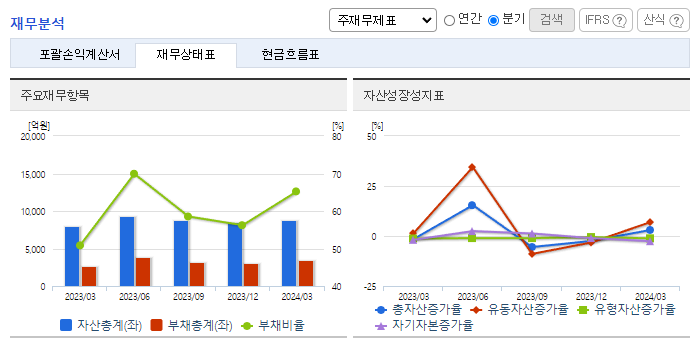 -2023년 12월 전년동기 대비 연결기준 매출액은 7.9% 증가, 영업이익은 104.9% 증가, 당기순이익은 81.9% 증가. 사업적으로 설계용역수행, 원자력 발전소 유지보수 확대, LNG 및 신재생 사업전환을 가속화함. 인도네시아 LNG사업 수주도 성공함. 재무적으로 경상경비 절감, 경영부실 출자회사 청산을 통해 부채비율을 56.22%로 안정 유지하고, 유동비율은 전년대비 26.9%p 증가하는 등 동사 재무구조를 개선함.