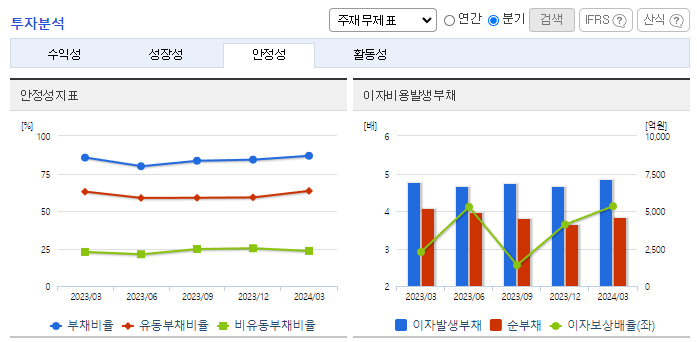 -2024년 3월 전년동기 대비 연결기준 매출액은 6.4% 감소, 영업이익은 54.9% 증가, 당기순이익은 7.6% 증가. 주력 부문인 제지 및 반도체 부문의 매출이 감소하여 전체 외형에 영향을 주었으나, 비용 절감의 노력이 더해져 영업이익은 성장세를 유지 중임. 동사는 올해 경영 안정화와 종속회사별 성장동력 확보를 통해 실적 성장세를 나타내기 위해 집중할 예정임.