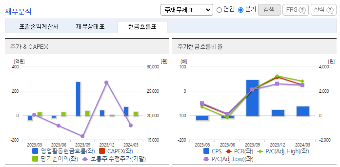 -2024년 3월 전년동기 대비 연결기준 매출액은 2.1% 증가, 영업이익은 41.3% 증가, 당기순이익은 16.2% 증가. 기타 매출 사업부문이 18.04% 증가하면서 전체 외형 성장을 이끎. 신규 서비스로 키오스 사업과 데이터 서비스 사업을 추진 중임. 영업 외 손익에서 잡이익과 배당금 수익이 축소돼 기타 수익 부문이 81.39% 감소하여 영업이익 증가폭 대비 당기순이익이 소폭 증가함.