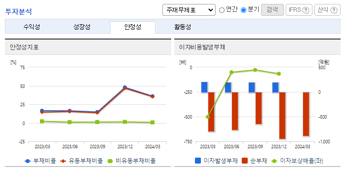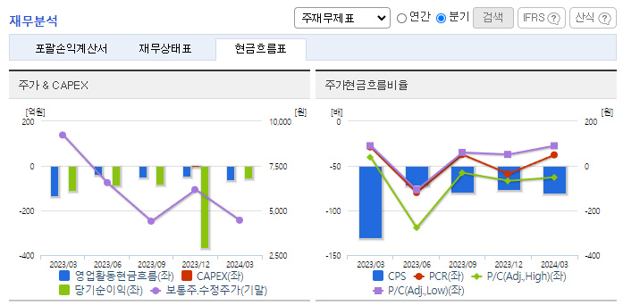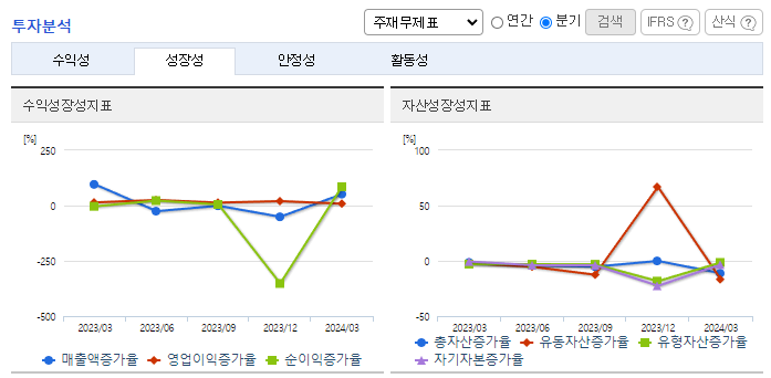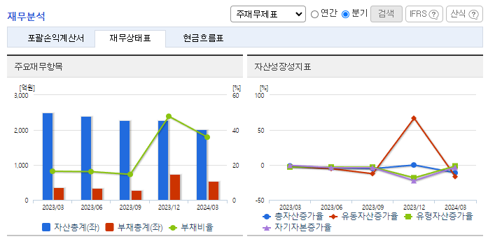 -2024년 3월 전년동기 대비 연결기준 매출액은 44.4% 감소, 영업손실은 52.6% 감소, 당기순손실은 50.5% 감소. 연구용역 및 건강기능식품 등의 매출 감소로 외형상 전체 매출 감소한 상황이나, 아직은 큰 의미를 부여하기는 어려운 상황. 핵심 파이프라인으로 당뇨병성 신경병증 치료제 VM202와 근위축성 측삭경화증(ALS) 치료제인 VM301(NM301)가 있음.